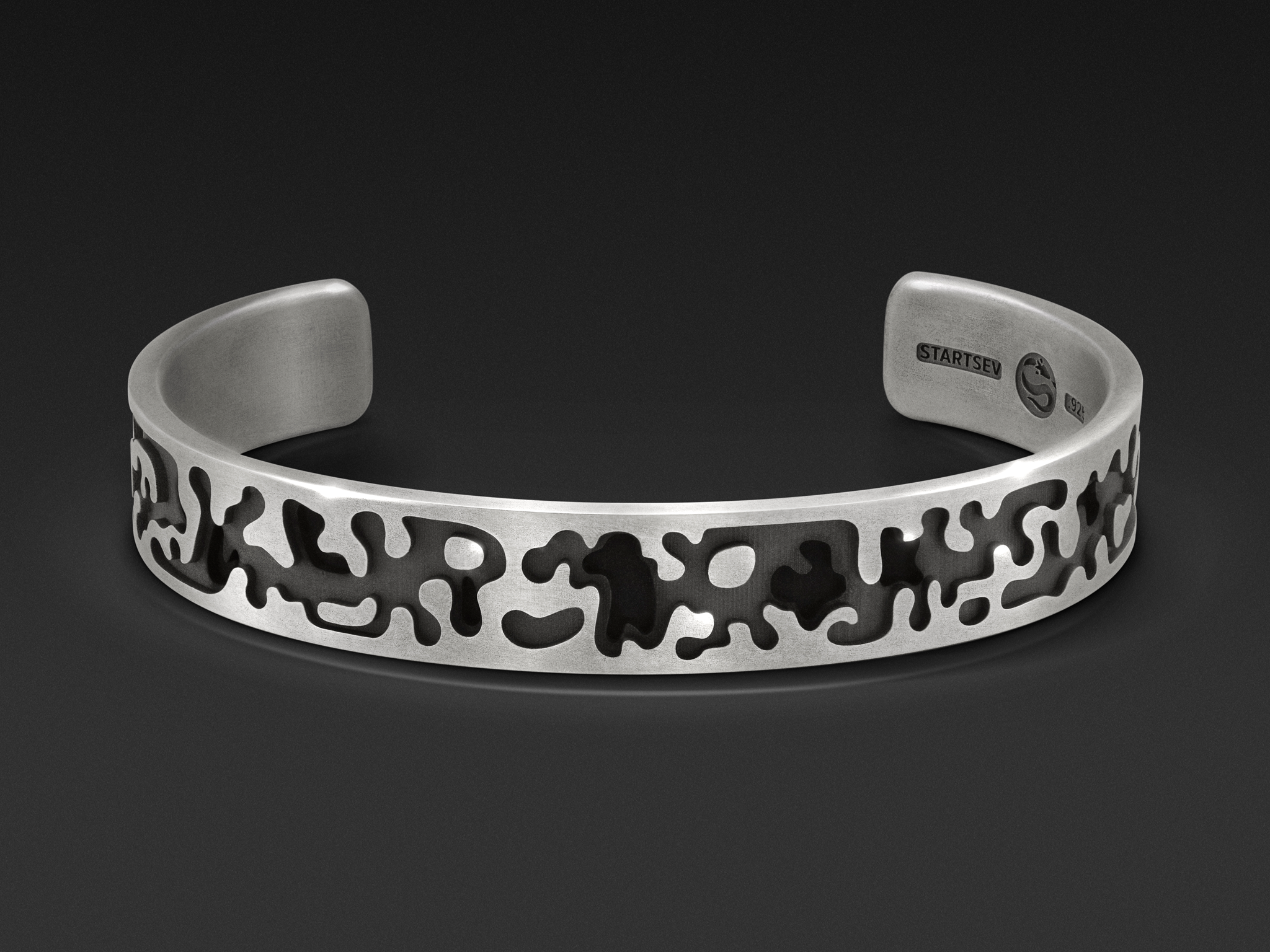 À la fois contemporain et intemporel, le motif camouflage est toujours tendance. Ce bracelet manchette est fini à la main en argent sterling 925 oxydé pour un aspect vintage et artisanal. Le motif réel peut différer de celui présenté sur la photo.