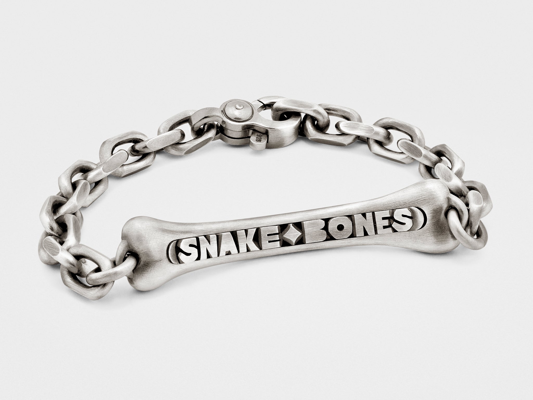 Depuis la nuit des temps, nos ancêtres se sont parés de trophées. Ce bracelet en os, réalisé à la main, revisite avec fantaisie ce motif ancestral. Sa finition en argent massif patiné lui confère un aspect vintage et artisanal.
