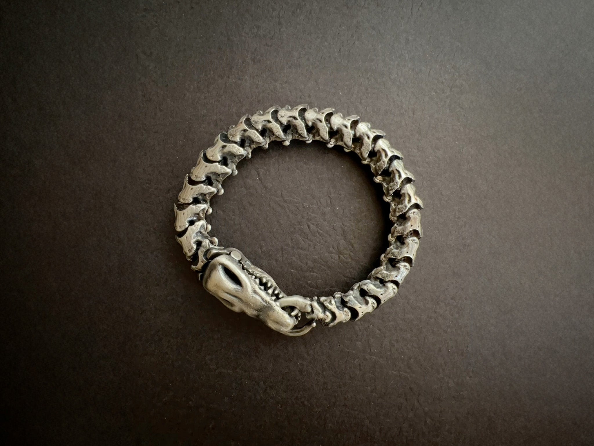 Confectionné avec précision en argent massif, ce bracelet arbore un design unique inspiré des courbes gracieuses des vertèbres de serpent. Chaque pièce témoigne d'un savoir-faire méticuleux et vous offre un mariage unique entre art inspiré par la nature et élégance intemporelle. Sublimez votre style avec ce chef-d'œuvre artisanal qui capture l'essence même du raffinement et de l'individualité.Conçu et fabriqué à la main par Anatoly Startsev en argent massif.