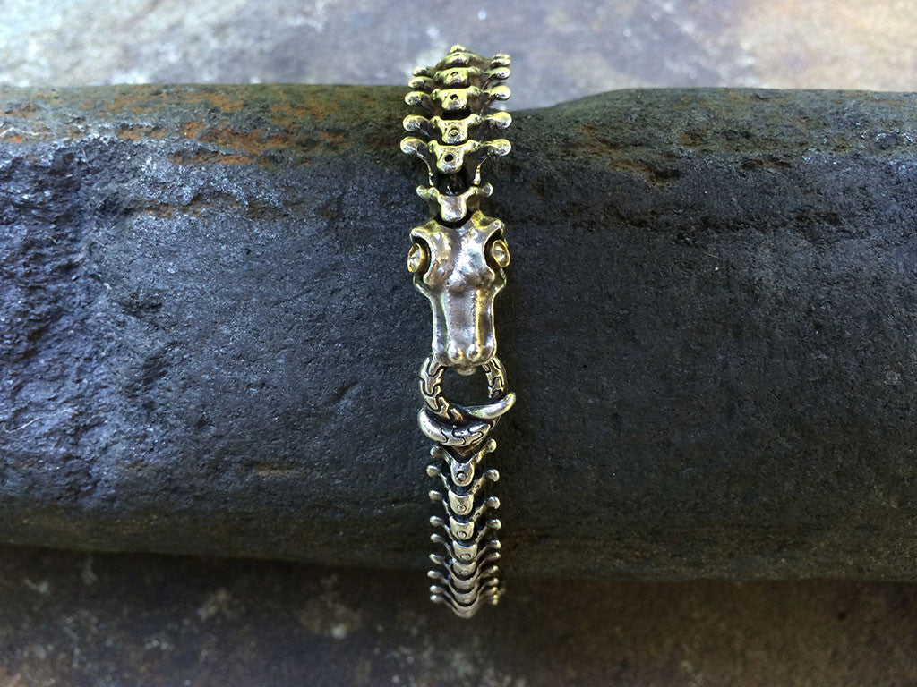 Le design unique de ce bracelet « Snake Bones » est inspiré des véritables vertèbres de serpent et est exceptionnellement détaillé. Conçu et fabriqué à la main par Anatoly Startsev en argent sterling, or 18 carats et diamants.